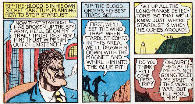 Surprising nobody, Thesson does indeed find the Ring of Poseidon after one last sabotage attempt that leaves Procrustous dead. This is enough for the local mystery cult to acclaim him the Reincarnation of Theseus and he vows to use the powers granted by the ring (super strength and a degree of invulnerability, mostly) to battle crime and injustice. I initially hoped that Theseus would have fun mythology-inspired adventures like the MLJ Hercules but no, it's all super-scientists and fascists - not even a hint of poor neglected Sciron and his giant turtle.