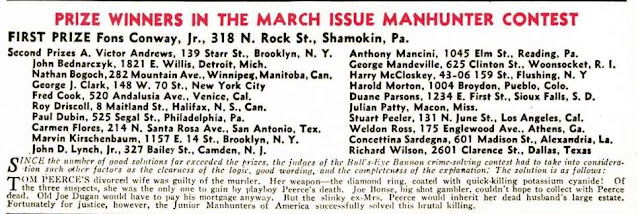 In 1940, Fiction House tried an innovative new method to sell their comics: a serialized contest! Specifically, they printed a series of adventures by detective Bullseye Bannon across issues of Fight Comics, Jumbo Comics, Jungle Comics and Planet Comics, and to enter the contest you had to send in your solution to the mystery along with four little coupons clipped from the issues. I can only assume that the whole exercise was more trouble than it was worth, because they only bothered to do it three times.